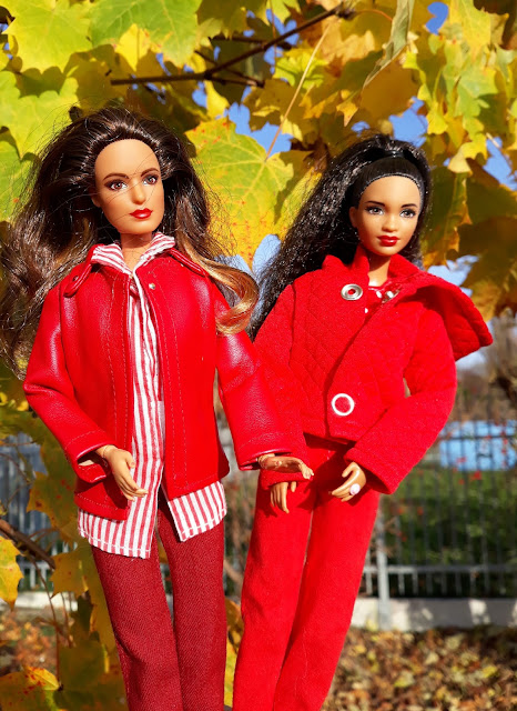 W sesji plenerowej udział wzięły: MIRIANA i TESSA, niedawno prezentowane, więc nie będę ich szczegółowo przedstawiać oraz debiutujące na blogu MANUELA i ADRIANNA. MANUELA to barbie holiday 2017 o latynoskiej urodzie i pasemkach we włosach, ADRIANNA to dobrze Wam znana, dość popularna barbie 56 z karbowanymi włosami, obie na artykułowanych ciałkach fashionistas.